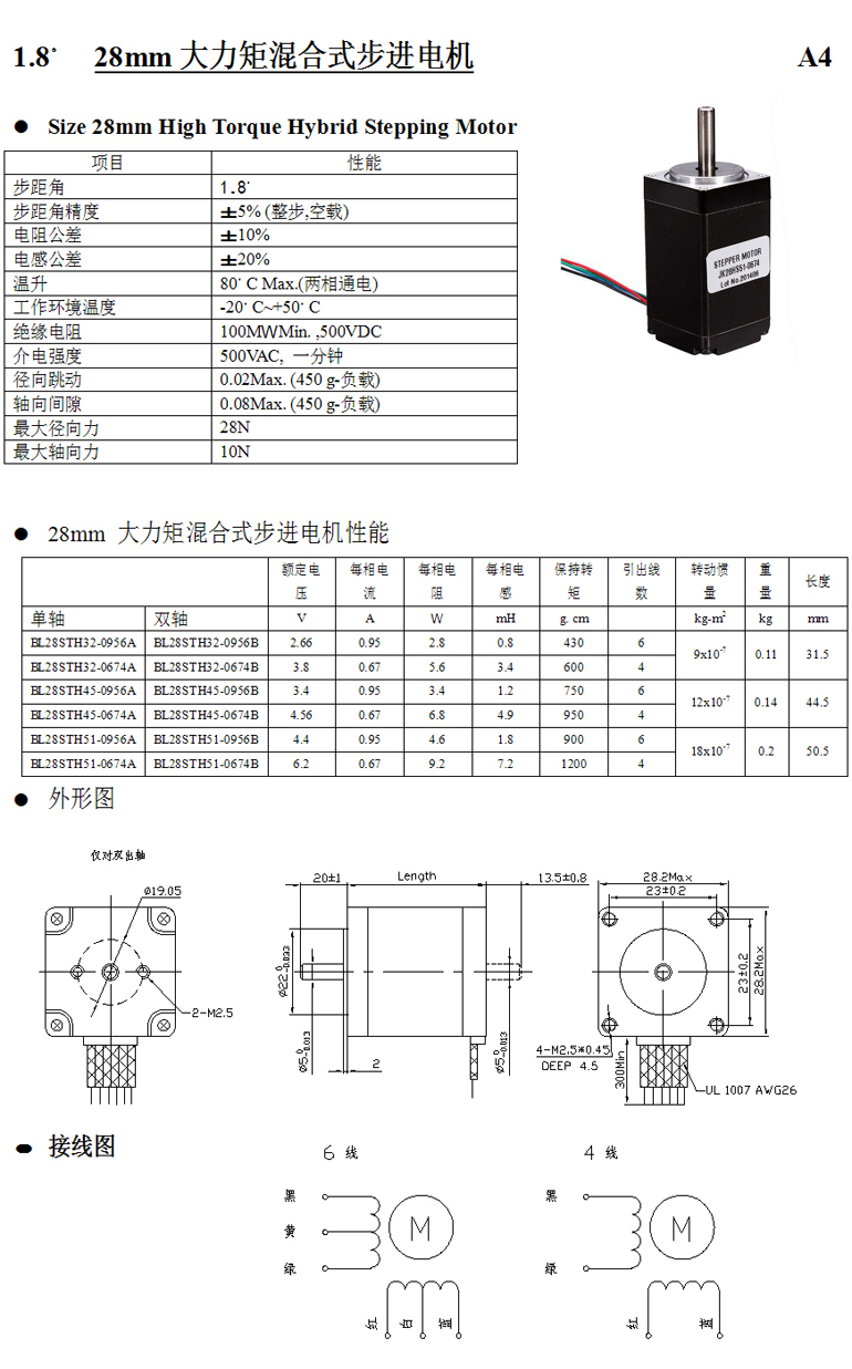 | 1.8°28mm兩相大力矩混合式步進(jìn)電機(jī) |